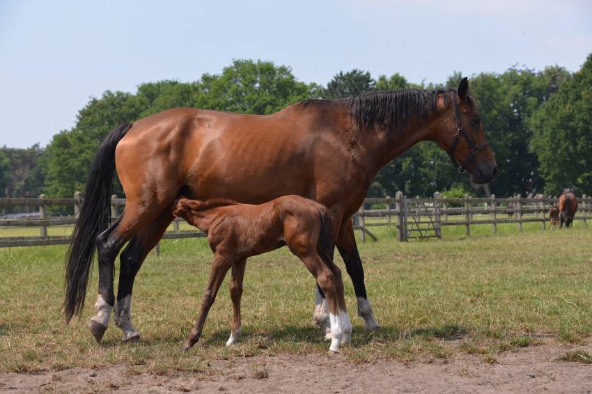 Het zijn al een aantal zware nachten waarbij wel elke nacht een veulentje wordt geboren. Ook deze nacht was het weer zover. Een flinke zoon van Diamant De Semilly werd geboren uit onze merrie Amke-S. Zij is de mama van Gamko-S 1m60 en Famko-S 1m50.